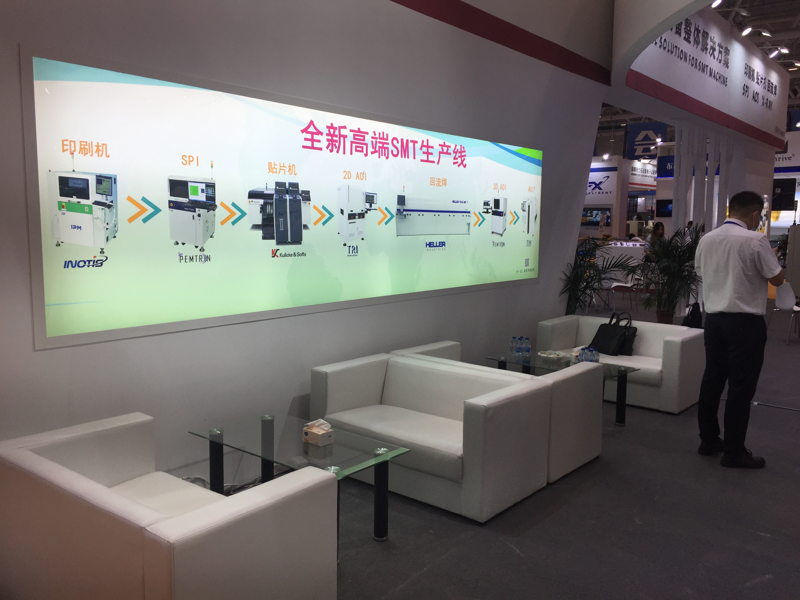 展會現場人氣爆棚,觀眾參觀熱氣度高漲,我司本次展出了高端SMT一站式解決方案設備:Inotis X6L印刷機、KY8030 2SPI、ASM(西門子)X4ISD4貼片機、VI 5K在線AOI、以及EMS智慧工廠沙盤,憑借我司多年品牌知名度和現場工程技術銷售的講解,現場聚集了大量粉絲觀眾,人流涌動熱鬧非凡,托普科實業用實力贏得了客戶認可和贊譽。