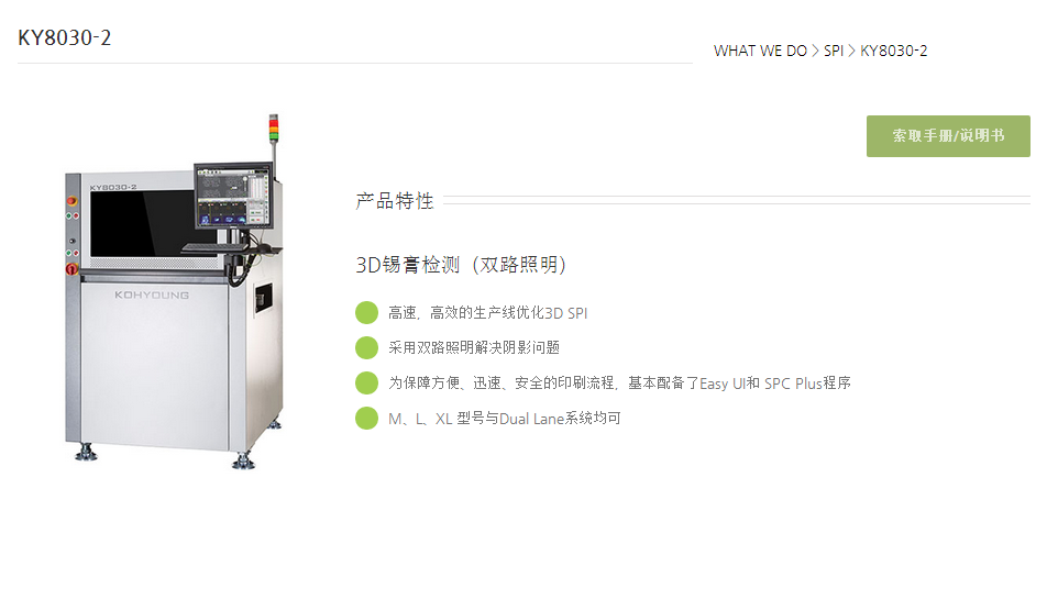 · KY8030-2提供了2x更快的檢測,而不會影響性能和精度。 · 使用專利的雙投影,系統(tǒng)消除了所有3D SPI系統(tǒng)容易受到的關鍵陰影問題。 · Easy UI和SPC Plus包含在系統(tǒng)包中,以幫助用戶實現更快,更輕松的打印機工藝優(yōu)化